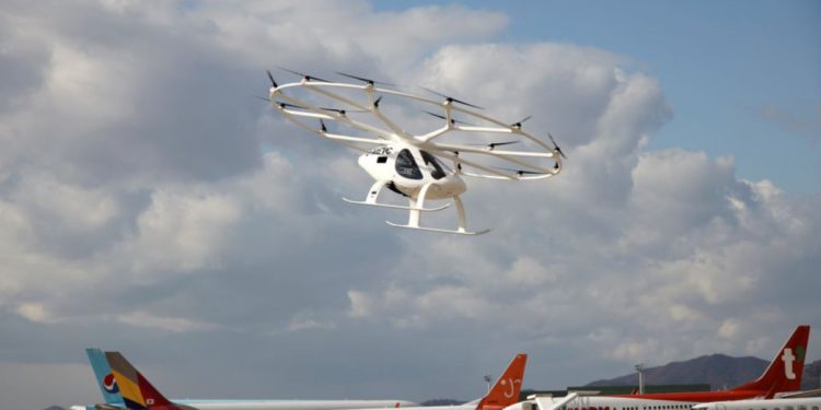 Güney Kore gelecekte kurulacak hava taksi hizmetlerinde kullanılacak hava trafik kontrol sistemini tanıttı. Bir pilot, Alman Volocopter tarafından üretilen iki kişilik hava aracını Gimpo Havaalanında test etti.