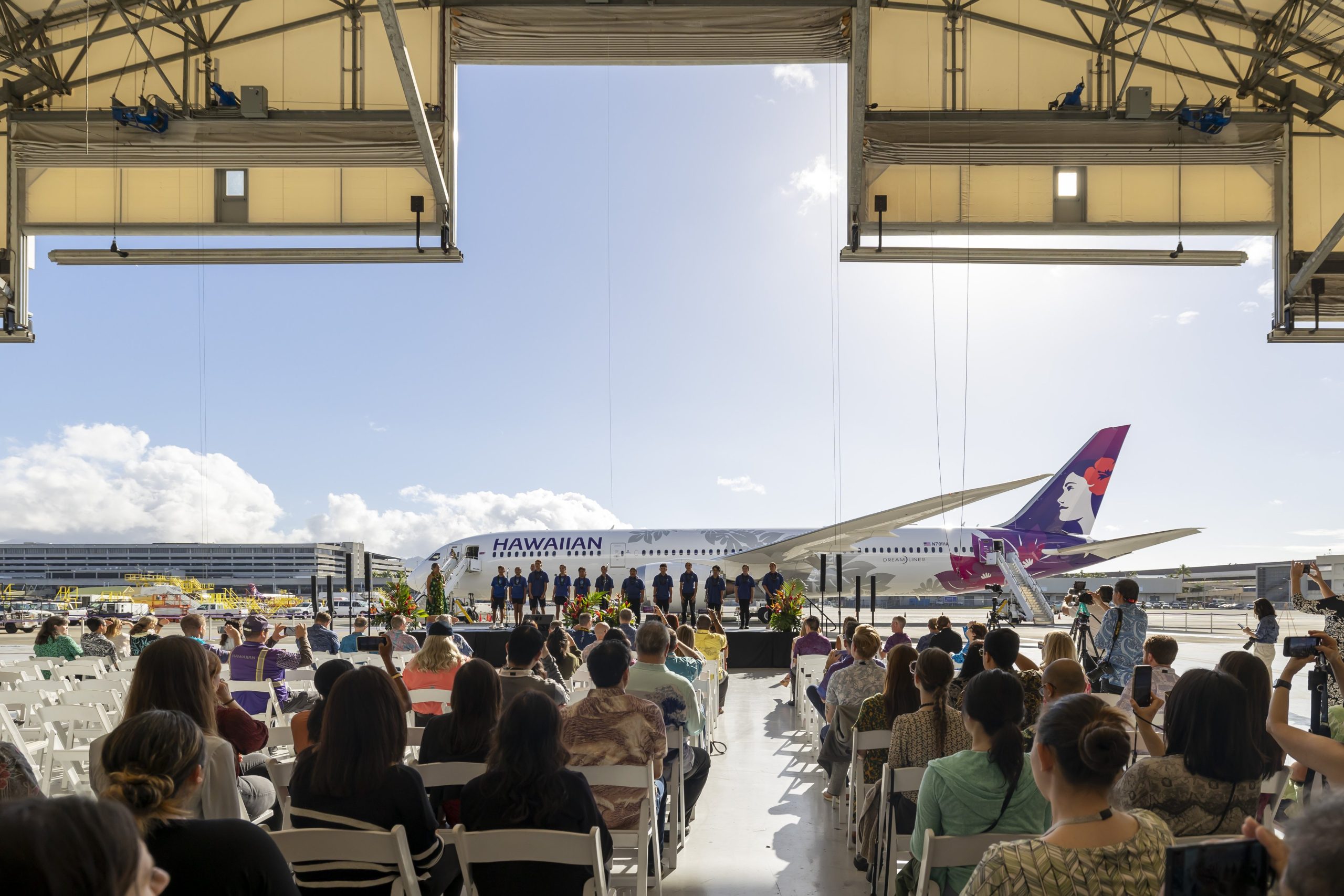 Hawaiian Airlines filosuna kattığı ilk B787-9 Dreamliner uçağını bin 500 çalışanının yer aldığı törenle kutladı.