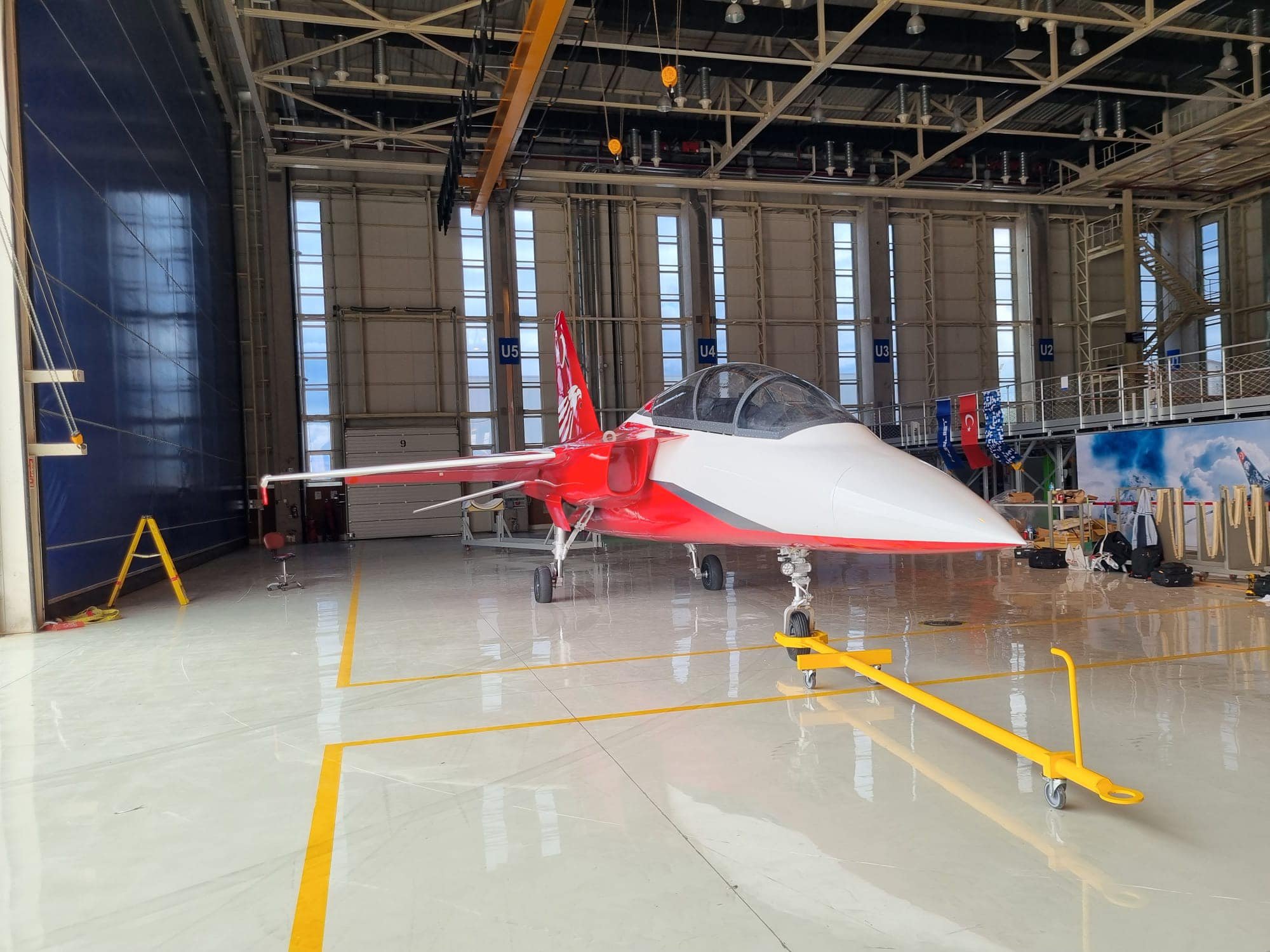 Türk Havacılık ve Uzay Sanayi (TUSAŞ) tarafından tasarlanan ve imalat süreci devam eden jet eğitim ve hafif taarruz uçağı HÜRJET, yeni boyamasıyla görücüye çıktı. İlk yerli jet uçağın bire bir ölçekli modeli (mock-up) kırmızı-beyaz renkleriyle görüntülendi.