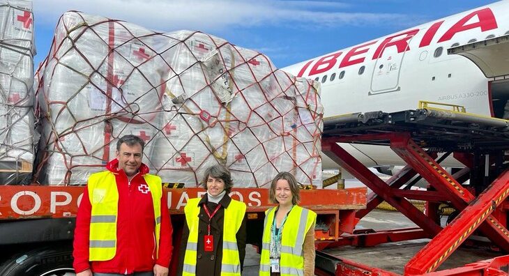 İspanyol Kızıl Haçı, Ukrayna’daki acil duruma yardım olarak 10 Mart’ta Iberia ve IAG Cargo ile Budapeşte’ye insani malzeme sevkiyatını gönderdi. 12 tonluk ilk sevkiyat, brandalar, battaniyeler ve gıdadan oluştuğu bildirildi.