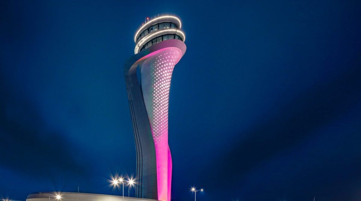 İstanbul Havalimanı hava trafik kontrol kulesi, meme kanserinde erken tanıya dikkati çekmek amacıyla pembe ışıkla aydınlatıldı.