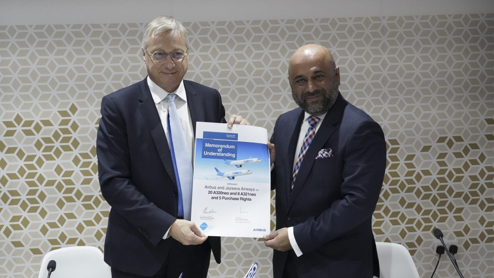 Airbus, Dubai Air Show’daki 3’üncü anlaşmasını Jazeera Airways ile gerçekleştirdi. Kuveyt’in bayrak taşıyıcı firması olan Jazeera Airways yapılan protokole göre 28 yeni uçak için Airbus’a yaklaşık 3.3 milyar dolar ödeme yapacak.