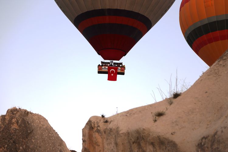 Nevşehir merkeze bağlı Göreme beldesi ve Avanos ilçesi Paşabağı mevkisinden havalanan balonlara, Türk bayrakları ve pankartlar asıldı.