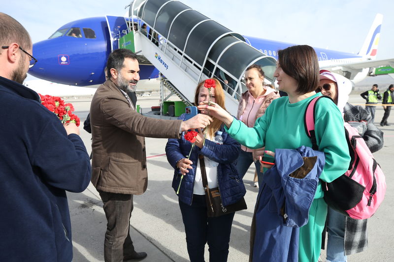 Moldova’dan direkt uçuşla Nevşehir’e gelen 220 turist, Kapadokya Havalimanı’nda çiçeklerle karşılandı.