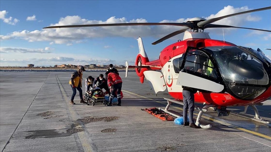 Van’ın Gevaş ilçesinde yüksekten düşen 61 yaşındaki İsa Metin, yolun kar nedeniyle kapalı olması nedeniyle ambulans helikopterle hastaneye ulaştırıldı.