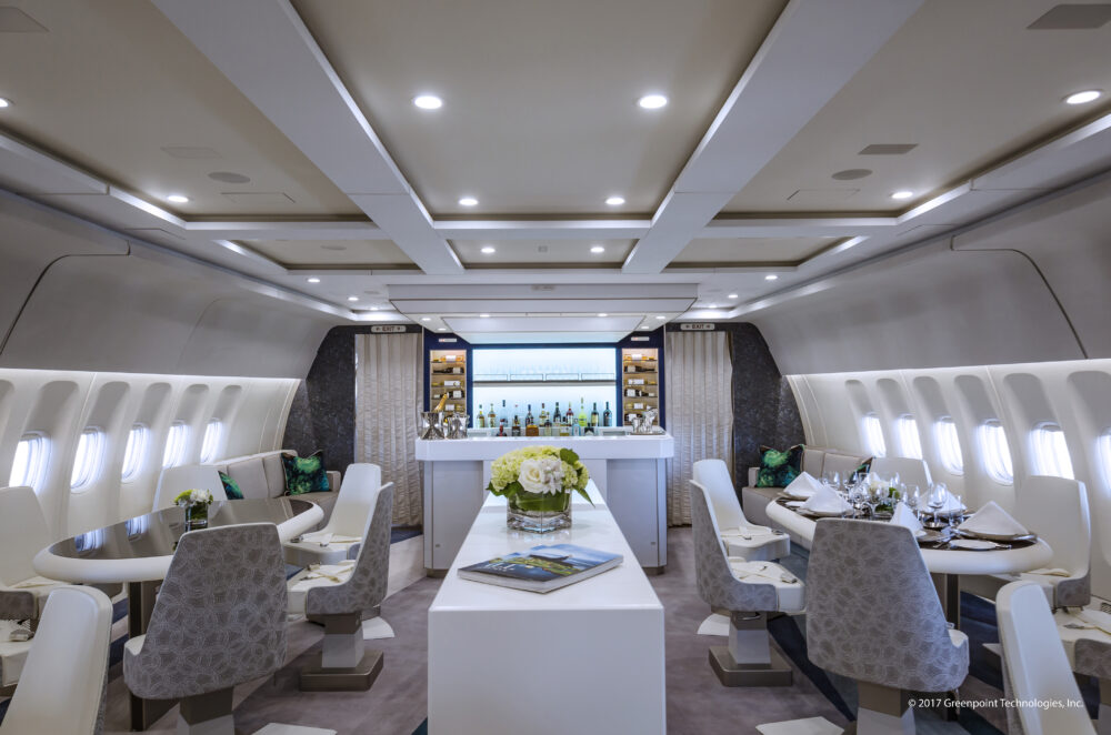 Bu konsepti uçağa, iş jetleri ve Devlet Başkanları uçakları için iç mekanlar sağlayan Greenpoint Technologies tasarlamış.