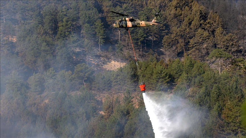 AA’nın aktardığına göre, bölgede 26 helikopter, 9 uçak, 78 arazöz, 8 dozer ve 800’e yakın personelle yürütülen çalışmalarla yangın kontrol altına alındı.
