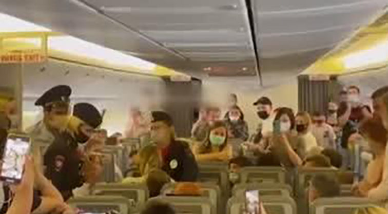 Rusya’nın başkenti Moskova’dan Antalya’ya giden yolcu uçağındaki yolculardan biri tüm uyarılara rağmen maske takmayı reddedince polis tarafından yaka paça gözaltına alınırken, diğer yolcular polisi alkışladı.
