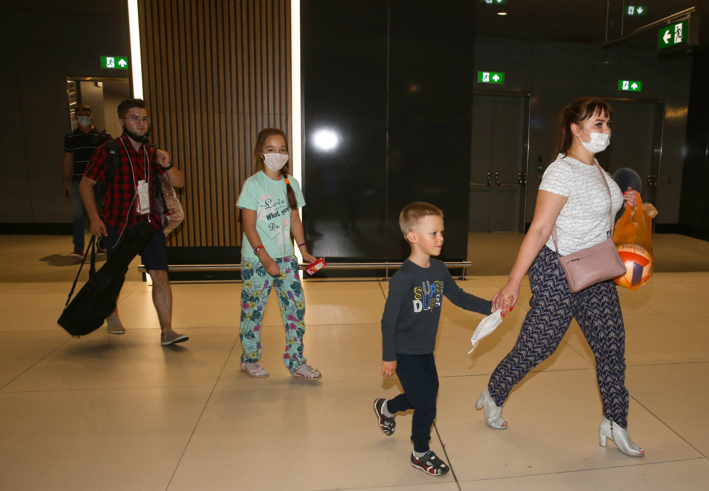 Sabah saatlerinde, Türk Hava Yolları’nın (THY) tarifeli seferiyle İstanbul’a gelen ve çoğunluğunu Rus vatandaşlarının oluşturduğu yolcular, körükten terminale alındı.