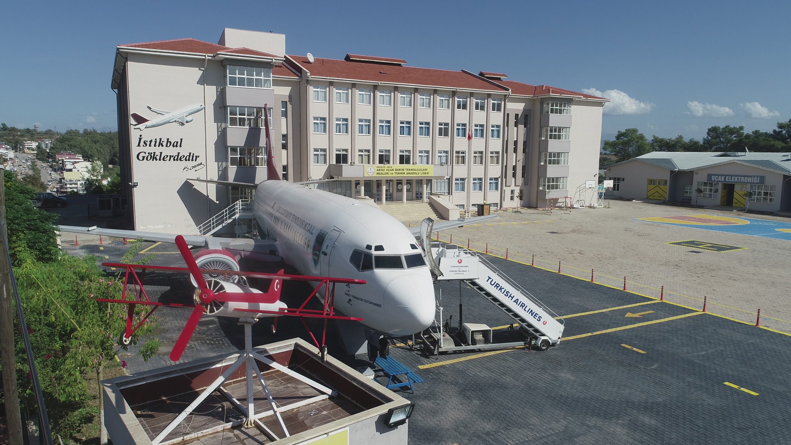 Bakan Çavuşoğlu’nun girişimleriyle bir hayırseverin satın aldığı uçağın okula hibe edilmesiyle okulun bahçesine taşınan uçağa, 8 aylık çalışmayla, kütüphane, müze ve mini sinema salonu kuruldu.