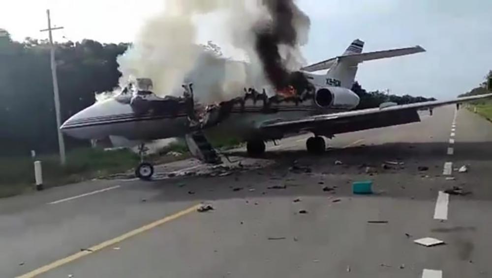 Meksika’nın Quintana Roo eyaletinde, uyuşturucu taşıdığından şüphelenilen iş jetinin otoyola iniş yaptığı ve alev aldığı bildirildi.