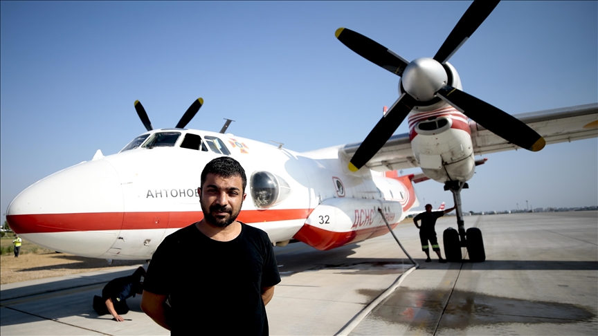 Ukrayna’dan gelen yangın söndürme uçaklarında koordinatör pilot olarak görevlendirilen Düzgün, bir haftadır alevlerle mücadele ediyor.