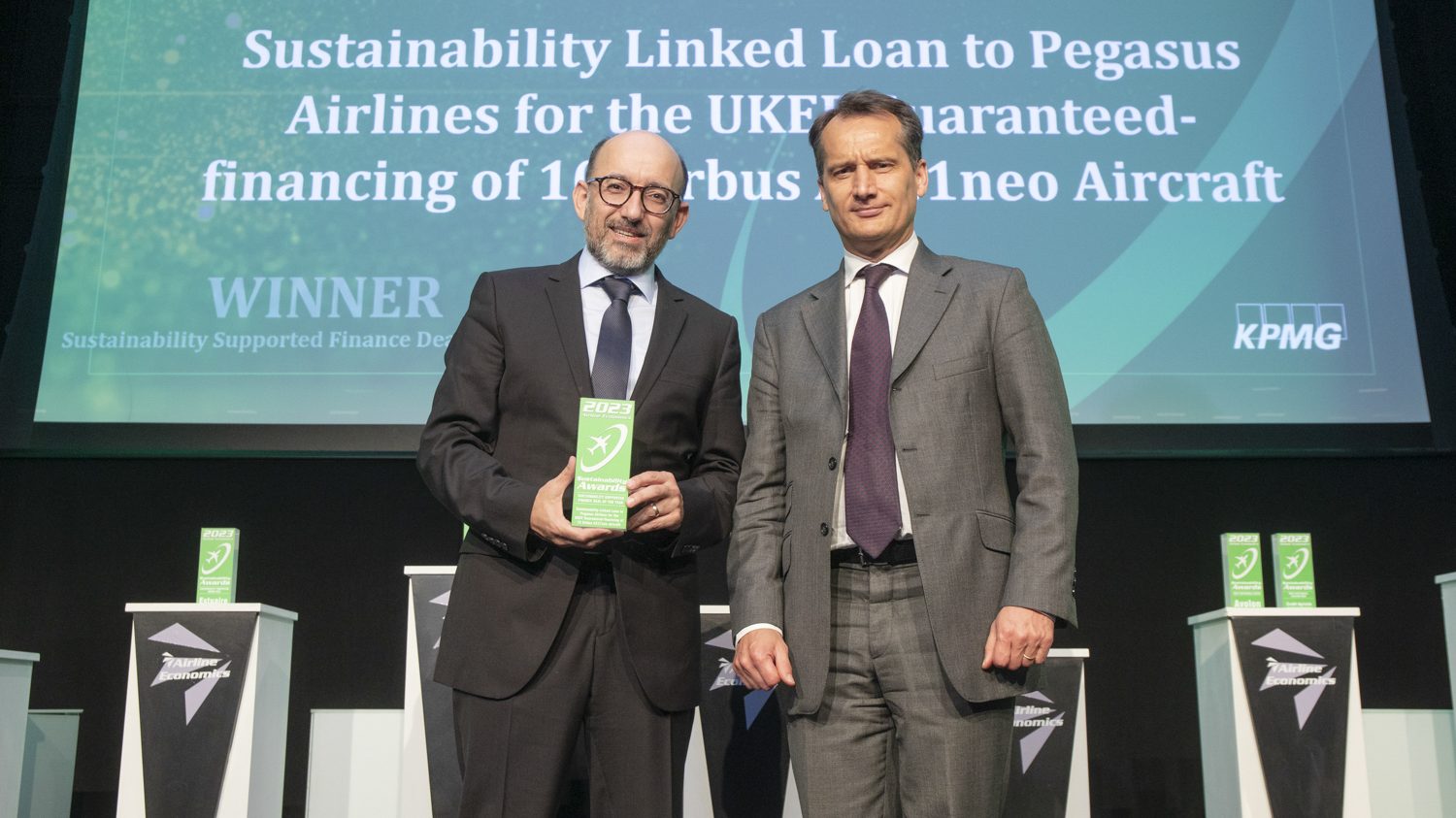 Pegasus Hava Yolları, 10 adet yeni Airbus A321neo uçağının UK Export Finance destekli finansmanı için gerçekleştirdiği, dünyanın ilk sürdürülebilirlik bağlantılı kredisi işlemiyle yurt dışından iki ödüle birden layık görüldü.