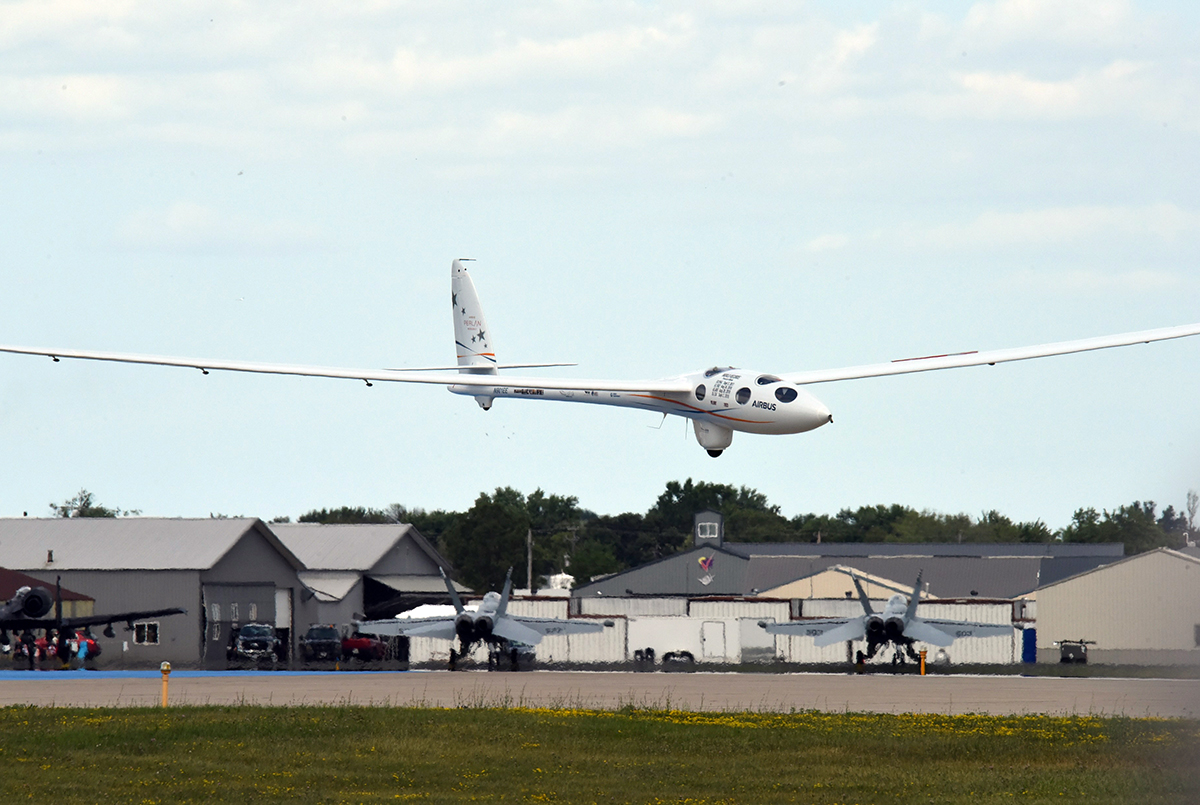 EAA AirVenture’de 15 dakikadan kısa süren bir uçuştan sonra planör, yumuşak bir şekilde piste iniş yaptı.