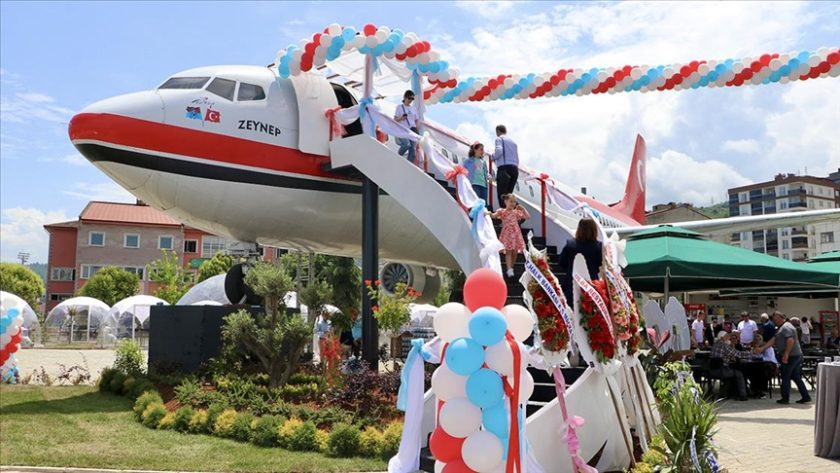 Trabzon Havalimanı’nda 14 Ocak 2018’de pistten çıkması sonucu hizmet dışı kalan “Zeynep” adlı yolcu uçağı, Yomra ilçesinde pide salonu olarak hizmet vermeye başladı.