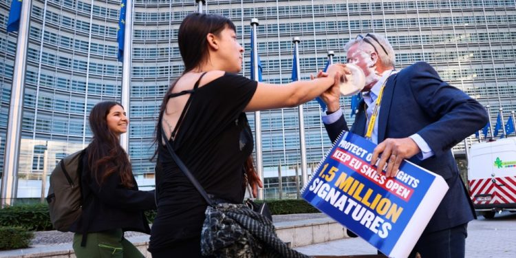 Avrupa’nın en büyük havayolu şirketlerinden Ryanair’in Üst Yöneticisi (CEO) Michael O’Leary, Brüksel’deki Avrupa Birliği (AB) Komisyonu önünde çevreci aktivistlerin “pastalı saldırısına” uğradı.