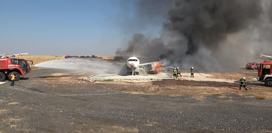 İl Sağlık Müdürlüğünden yapılan açıklamaya göre, senaryo gereği Hindistan-Şanlıurfa seferini yapan GAP Hava Yollarına ait uçak inişi sırasında, pist yüzeyinin kaygan olması nedeniyle, pist dışına çıkarak toprak zemine gömüldü. Uçağın sol kanadı zemine çarpması sonucu yangın çıktı.
