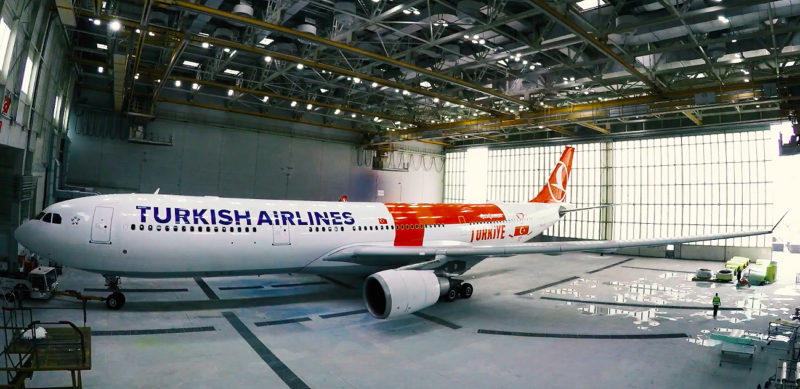 Türk Hava Yolları’nın 19 Mayıs’a özel olarak hazırladığı “Tarihi Forma” göklerle buluştu. Airbus A330-303 tipi ve TC-LND tescilli uçak yeni görünümüyle Türkiye A Milli Takımı’nı Avrupa’ya taşıyacak.