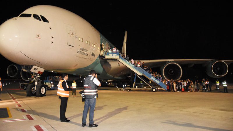 Yakıt ikmalinin ardından havalimanında bekleyen 222 yolcu otobüslerle uçağa taşındı. Uçak yolcularını alarak 01.30 sıralarında havalimanından ayrıldı.