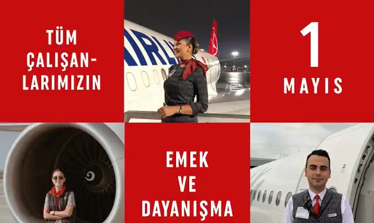 Türk Hava Yolları (THY), 1 Mayıs Emek ve Dayanışma Günü’nü kutladı. Videoda çalışanların fotoğrafları yer aldı.