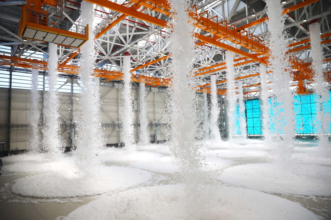 Türk Hava Yolları Teknik AŞ’nin İstanbul Havalimanı’nda inşa ettiği üs bakım hangarlarının yangın söndürme sistemi test edildi.