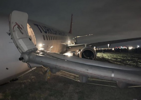 Türk Hava Yolları’nın TC-JGZ kuyruk numaralı Boeing 737-800 tipi yolcu uçağı Ukrayna’nın Odessa Havalimanı’na inişi sırasında pistten çıktı.