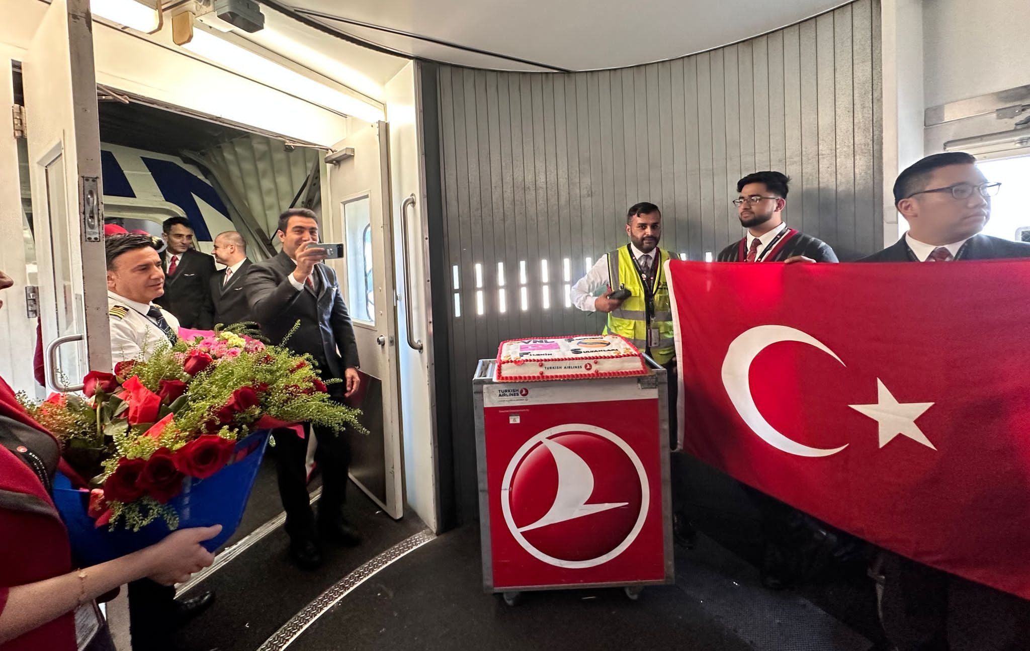 Milliler için uçuş öncesi pasta kesimi yapılırken; bayrak taşıyıcı havayolu kaptan pilotlarından Murat Tekgül ise özel bir anons yaptı: