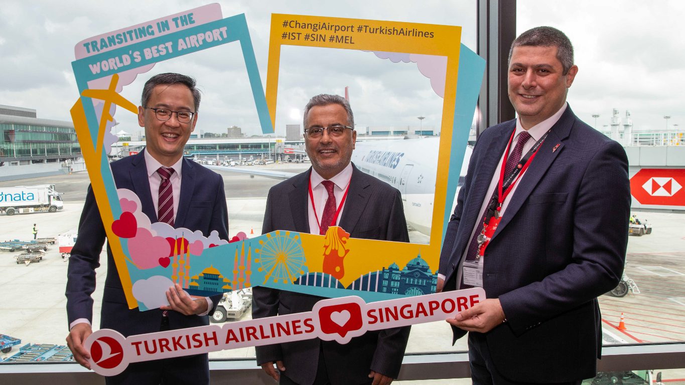 İlk uçuş anısına Türkish Do&Co tarafından hazırlanan menülerde Kanguru ve Koala figürleri dikkat çekti. Yaklaşık 10 saat süren uçuşun ilk aşaması Singapur Changi Havalimanı’nda sona erdi. İlk uçuş anısına Changi’de özel bir tören düzenlendi. Ahmet Bolat, Türkiye Cumhuriyeti Singapur Büyükelçisi Burçin Gönenli ve Changi Havalimanı Genel Müdür Yardımcısı Yam Kum Weng, birer konuşma yaptı. Ardından karşılıklı hediyeler verilirken, kurdele ve pasta kesimi yapıldı.