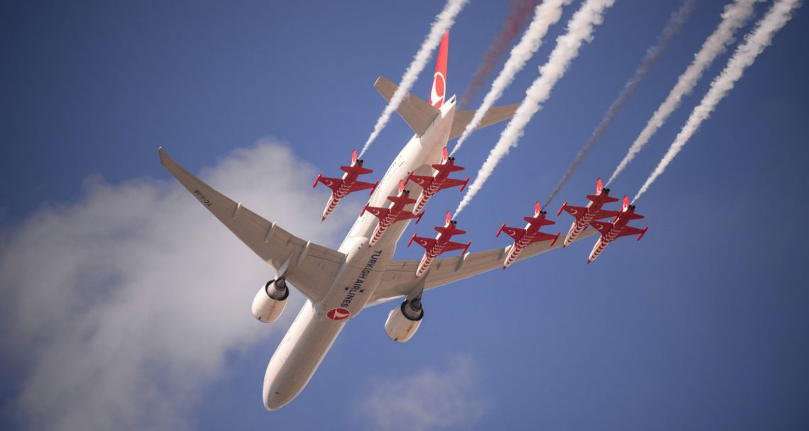 Türkiye’nin ilk havacılık, uzay ve teknoloji festivali olan Teknofest‘te 2018 yılında tarihi anlar yaşanmıştı. THY filosundaki en büyük uçaklardan Boeing 777 ile Türk Hava Kuvvetleri akrobasi takımı Türk Yıldızları, nefes kesen bir gösteri yapmıştı. THY uçağının sağında ve solunda yer alan Türk Yıldızlarına ait NF-5 uçakları ‘kol uçuşu’ olarak adlandırılan gösteri uçuşuyla, ziyaretçileri selamladı. İlk geçişte Türk Yıldızları, THY uçağının arkasında kaldı. İkinci geçişte ise NF5’ler, uçağın sağında ve solunda 3’erli formasyona geçerek izleyicileri ikinci kez selamladı. Daha sonra Avrupa ve Asya’yı birbirine bağlayan boğazın üstündeki geçiş unutulmaz anlara sahne oldu. Bu uçuşta THY’nin en anlamlı uçuşları arasında yer aldı.