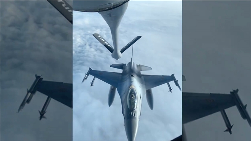 Bakanlığın sosyal medya hesabından paylaşılan görüntülere ilişkin, “Hava Kuvvetlerimize ait KC-135R tanker uçağı, Romanya sava sahasında Romanya Hava Kuvvetlerine ait 4 adet F-16 uçağına havada yakıt ikmal desteği verdi.” bilgisi verildi.