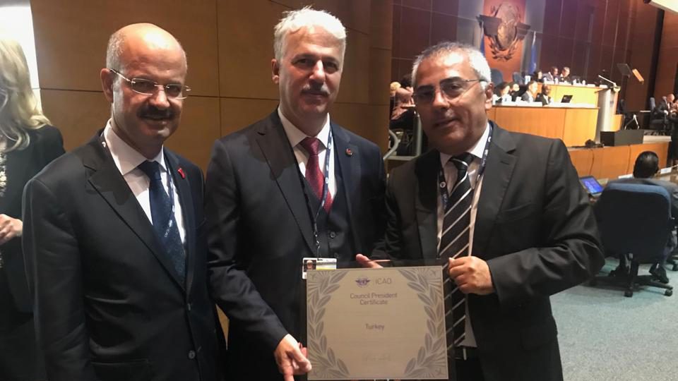 Uluslararası Sivil Havacılık Örgütü (ICAO) tarafından Türkiye’ye, havacılık güvenliğinde gösterdiği başarıdan dolayı “ICAO Başkanlık Konseyi Havacılık Güvenliği Sertifikası” verildi.