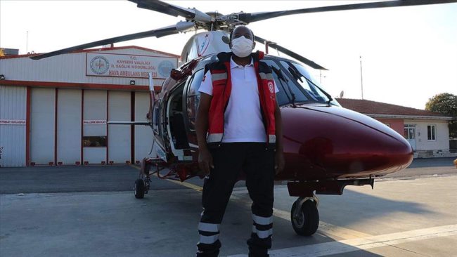 Eğitim amacıyla geldiği Türkiye’de 20 yıl önce Erciyes Üniversitesi Tıp Fakültesinden mezun olan Tanzanyalı Erdem, Kayseri’de görev yaptığı hava ambulansında insanların yardımına koşuyor.