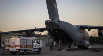 Sağlık Bakanlığı, Afet ve Acil Durum Yönetimi Başkanlığı (AFAD) ve Kızılay tarafından hazırlanan malzemeler, Etimesgut Askeri Havaalanı’nda A 400M tipi askeri kargo uçağına yüklendi.