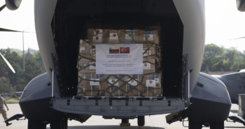 Venezuela’ya hareket eden uçaktaki kolilerin üzerinde, Cumhurbaşkanlığı forsunun yanı sıra Türkçe ve İspanyolca, Mevlana’nın, “Ümitsizliğin ardında nice ümitler var. Karanlığın ardında nice güneşler var.” ifadelerine yer verildi.