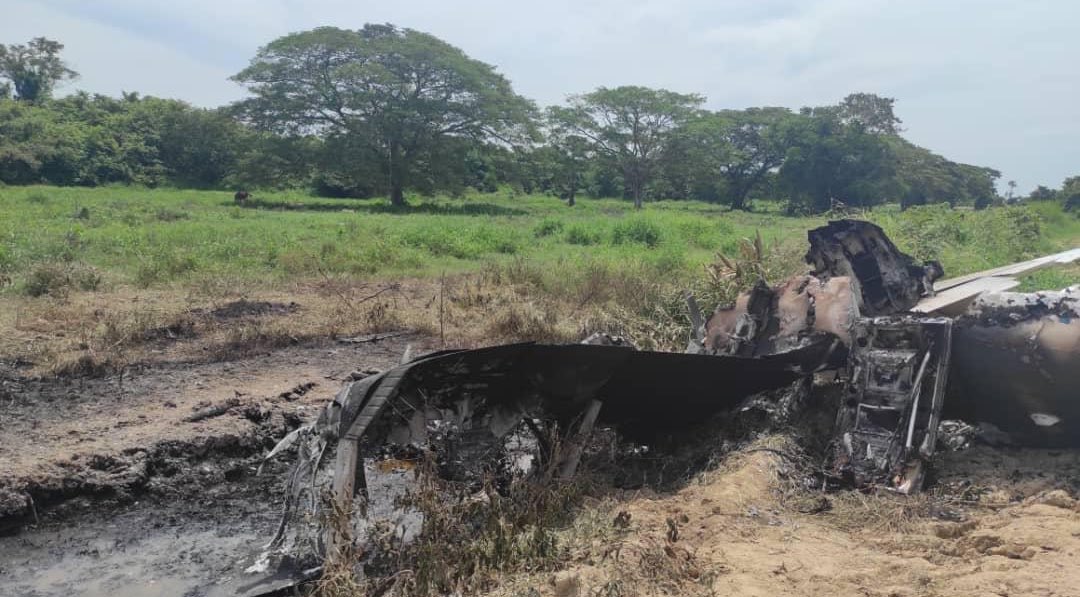 Venezuela askerleri uçağın enkazını inceledi. (Fotoğraf: @NestorLReverol)