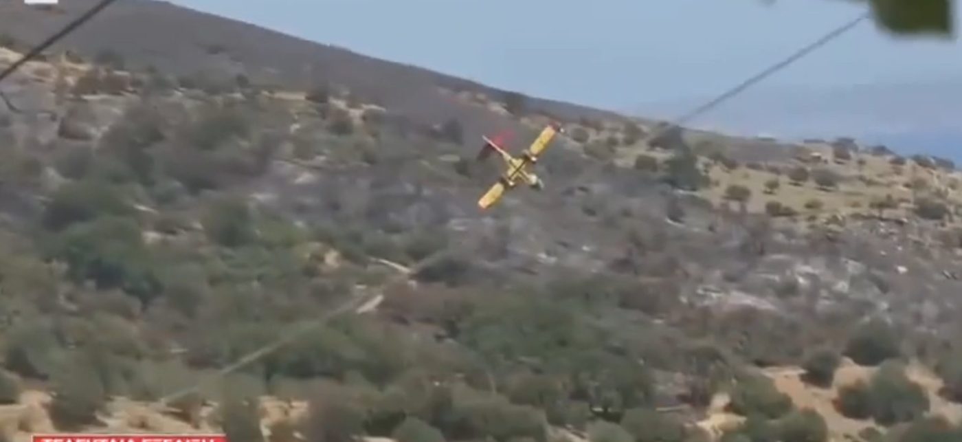 Yunan basınında yer alan haberlere göre, yangın söndürme çalışmalarına katılan Canadair CL-215 tipi uçak, Karisto bölgesinde yer alan Platanistos köyü yakınlarında düştü.