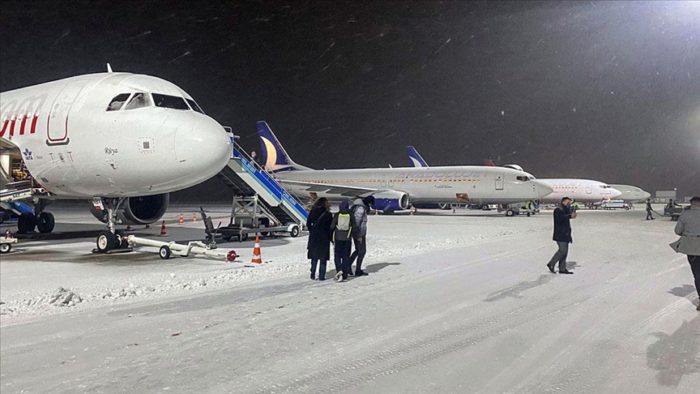 Zorlu hava şartlarına rağmen havalimanı pisti ulaşıma hazır tutuluyor