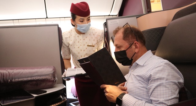 Kontuarda check-in işlemlerimizi yapıp, Katar Havayolları business yolcularının kullandığı İGA Lounge’da uçuşumuz beklemeye koyulduk. İkramlarını BTA’nın hazırladığı İGA Lounge’ın “dünyanın en iyisi” ünvanlı Katar Havayollarının hizmet aldığı dünyadaki özel yolcu salonlarından birisi olduğunu notunu da düşmüş olayım. 13.20’de kalkacak olan uçağımıza zamanında binip, Boeing 777-300’ün Q Suite koltuklarına yerleştim. Katar Havayolları, Q Suite Business Class koltuklarıyla 2018’te Kristal Kabin Ödülleri töreninde “en iyi business koltuk” seçilmişti. O tarihlerde ben de bu koltukları ve ödülü hangi özellikleriyle aldığını yazmıştım. İşte bu koltukları daha önce test etmiştim, ama bir kez daha İstanbul-Doha arasında deneyimleme şansım oldu.