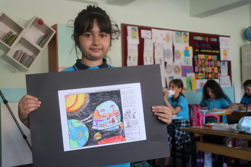Karin Berra Karagöz, AA muhabirine, NASA’nın açılımını bilmese de uzayla ilgili bir yarışma olduğunu düşündüğünü belirterek, “NASA’nın uzayda yaşam kategorisinde birinci oldum. Dünyaya bağlı bir tane daha dünya çizmiştim. Fanusa benziyordu, etrafını arka fonunu da uzay şeklinde çizmiştim. Fanusun içinde hayat, doğa, binalar, deniz… Bütün dünyadaki her şey… Dünya dışında bir dünya oluşturmuştum. Borularla bağlıydı dünyaya, altındaki füzelerle de gidiyordu.” dedi.