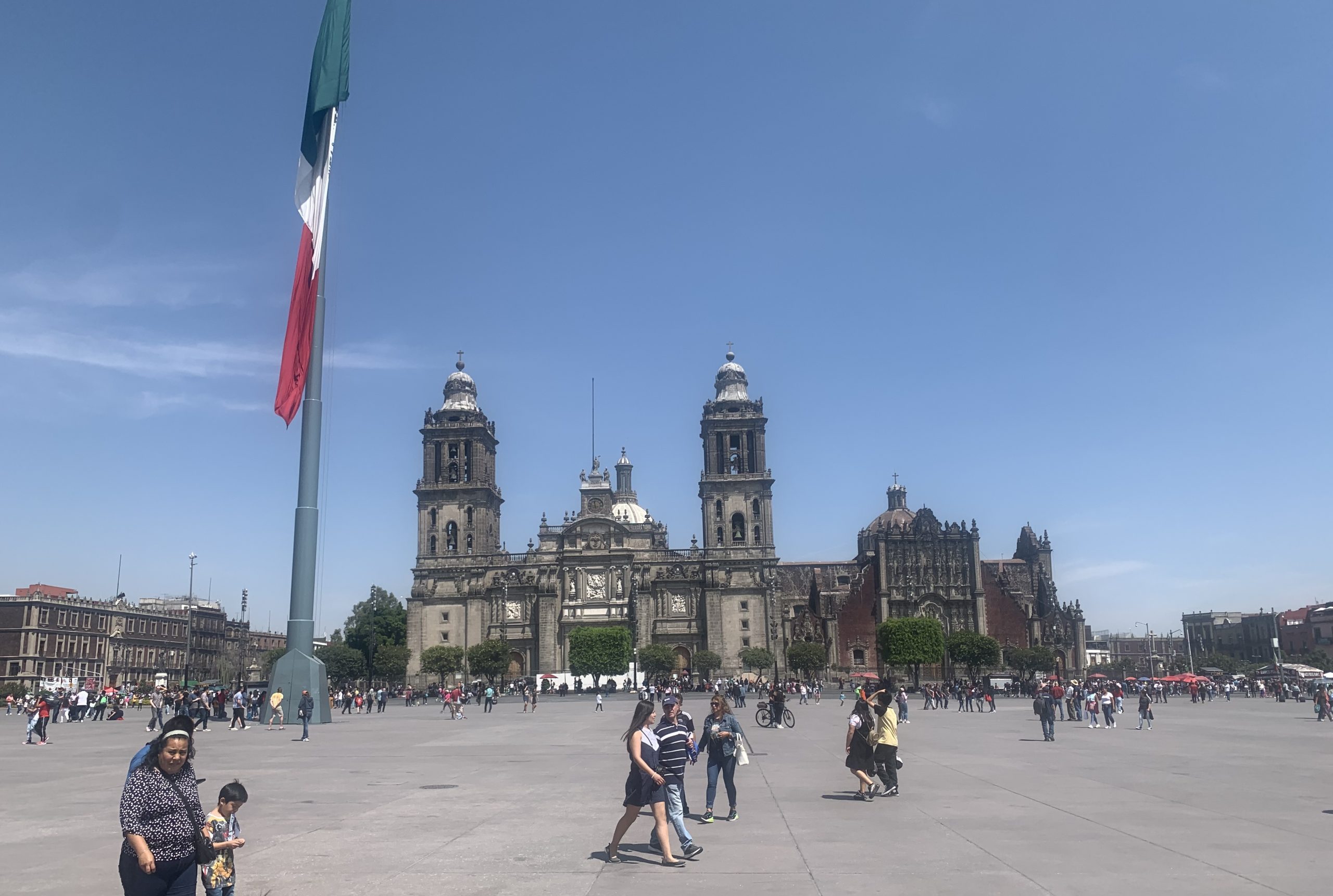 Meksiko’da gittiğimiz uçaktan inip otelimize bavullarımızı bıraktıktan sonra kent merkezini yaya olarak dolaşmaya başladık. İlk gittiğimiz yer kentin ana meydanı olan La Plaza de la Constitucion, yani Anayasa Meydanı oldu. Zocalo (Kaide) Meydanı olarak da anılıyor. Kare şeklindeki meydana 20 Kasım Caddesi’nden girdiğinizde hemen karşınızda şehrin tarihi katedralini görüyorsunuz.