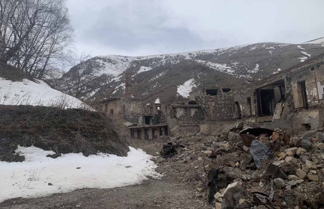 Bu kez geldiğimiz toprak yoldan kuzeye yönelip, batıya doğru uzanan asfalta çıktık. Bu yol Kelbecer’de Ermeniler yaptığı tek altyapı yatırımıymış. Karabağ’ı kuzeyden Ermenistan’ın Zod kentine bağlıyormuş. Yol üzerinde bir dizi ev gördük. Bu evler Suriye’den getirilen Ermeniler için yapılmış. Ancak, kaçarlarken bu evleri de harap halde bırakmışlar.