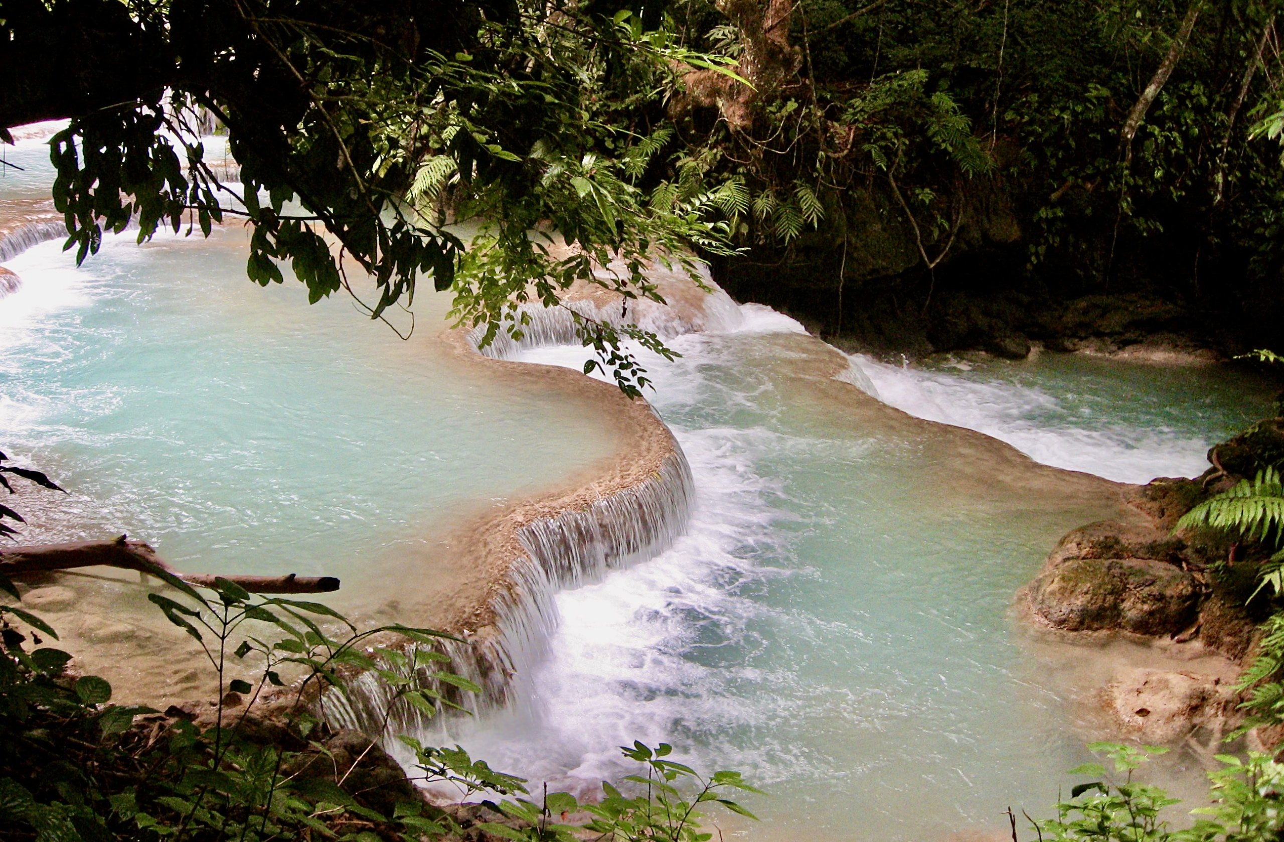 Luang Prabang’ta nehirde bir vapur gezintisi yaptık ama çamur renkli suda yapılan bu gezi pek ilginç değildi. Buna karşılık, Luang Prabang’a 25 kilometre uzaklıkta bulunan ve bir Hmong köyünü de gezerek gittiğimiz Kuang Si Şelalesi, gerçekten görülmeye değerdi. Tropik iklimde oluşan alçak bulutlar nedeniyle başlangıç noktası görülmeyen bu şelale, buluttan aşağı akan bir su izlenimini veriyordu.