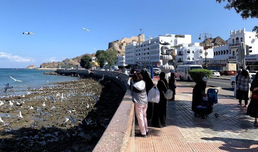 Muscat’ta kordonboyu ve arka planda Portekiz kalesi